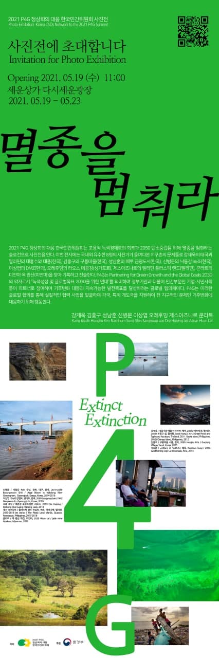 | [국제] 멸종을 멈춰라 | 녹색미래(P4G)정상회의 대응 시민사회포럼 참가안내_5/14(금) (0) | 2021.05.10 |