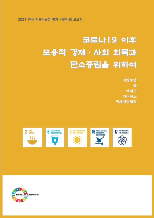 - 도 서 명 | 2021 한국 지속가능성 평가 시민사회보고서: 코로나19 이후 포용적 경제·사회 회복과 탄소중립을 위하여