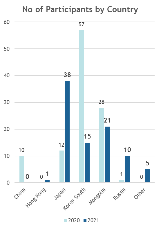 In the case of the CSO session, a total of 90 participants from 5 countries registered in 2021 that 8.8% decreased compared with 2020. Total 12 stakeholder groups registered and more than 50% are from NGO groups. For the collective work, a total of 22 volunteers, largely from youth groups, have joined working groups for communication and drafting of the statement.
