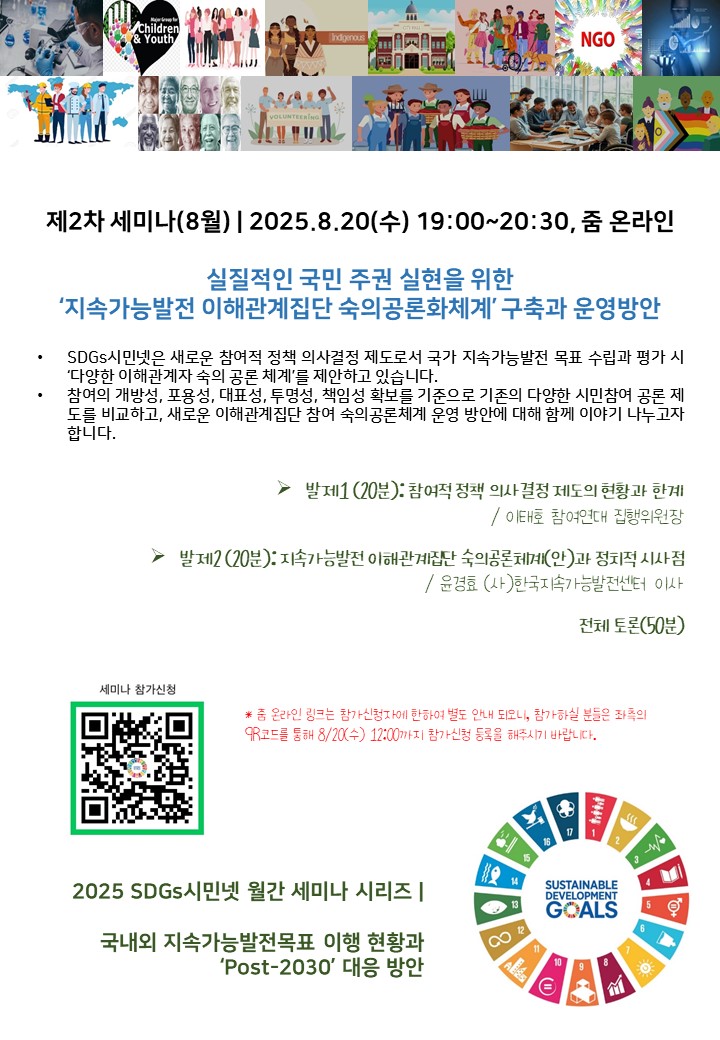 | SDGs시민넷 2025 역량 강화 세미나 시리즈 진행 (0) | 2025.06.30 |