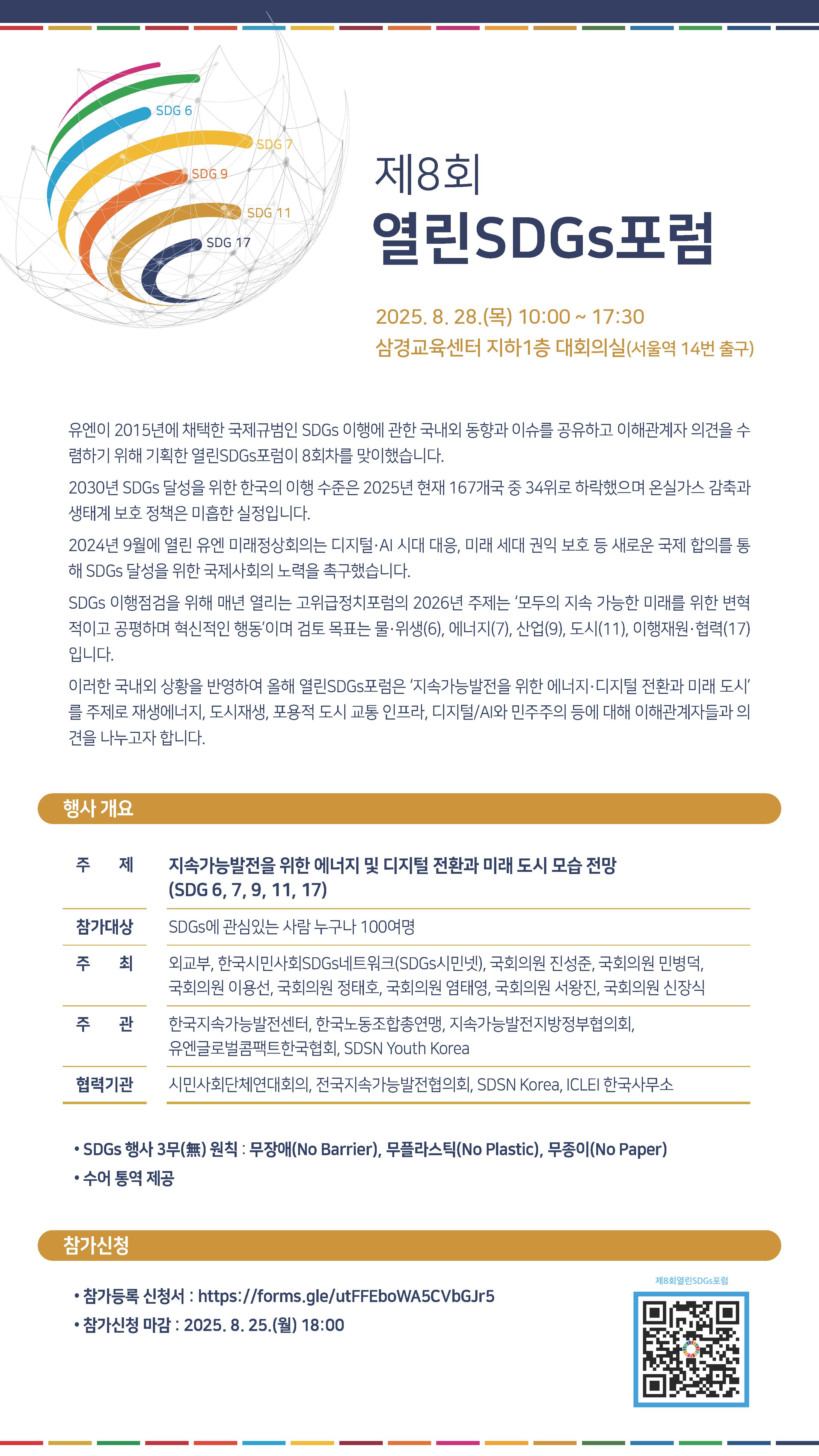 [제8회 열린SDGs포럼] 행사 참가 안내_8/28(목) 10:00~17:30