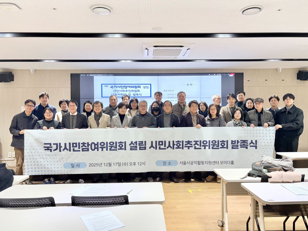 2025년 12월 17일, 서울시공익활동지원센터 모이다홀에서 '국가시민참여위원회 설립 시민사회추진위원회(이하 추진위원회)' 가 출범했다. 12.3 비상계엄 및 윤석열 탄핵 이후 국정 운영 시민 참여를 위한 제도적 기반으로서 '시민참여기본법' 제정과 '국가시민참여위원회' 설립과 실질적인 운영을 촉진하는 것이 목적이다.