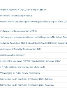 한국어 메뉴204 2020 아태 시민사회 포럼_11/26(목)~11/30(월) 2020 아태 시민사회 포럼_11/26(목)~11/30(월) The concept note of the program: tinyurl.com/AsPacPeoplesForum2020ConceptIf you have any concerns/inquiries, please contact or ★ 동북아 지역 오리엔테이션 워크숍: 11/27(금) 11:00~12:00(서울시간) 2020. 11. 25. 2020 동북아 이해관계자 SDGs 포럼_발표자료 및 영상 2020 동북아 이해관계자 SDGs 포럼_발표자료 2020 동북아 이해관계자 SDGs 포럼 영상11/3(화) https://youtu.be/iEJt-Zt_TtM 11/4(수) https://youtu.be/Ou747Tubb1E 2020. 11. 25. 제3회 열린 SDGs 포럼_유튜브 라이브 방송 SDGs시민넷 유튜브 라이브 링크: https://youtu.be/EX3tq4njPlg 2020. 11. 23. 제3회 열린 SDGs 포럼_발제원고 발제자료 링크 2020. 11. 12. 2020 동북아 이해관계자 SDGs 포럼 시민사회 참여활동 결과 결과물 발제자료-한/중/일/몽2020 동북아 시민사회 공동성명서_영문 2020 동북아 시민사회 공동성명서_국문 2020 동북아 이해관계자 SDGs 포럼(11/3~11/4)에서 발제/토론자로 한/중/일/몽 동북아 시민사회 관계자 총 14명 참여11/3(화) 동북아 SDGs 포럼 온라인 유튜브영상1. 21:20 홍현종 지속가능발전기업협의회 사무총장2. 1:24:36 홍상희 외교부 개발정책과 과장3. 2:09:17 윤경효 한국시민사회SDGs네트워크(SDGs시민넷) 사무국장4. 2:28:50 박문우 한국정보화진흥원 수석연구원5. 3:05:08 변재원 전국장애인차별철폐연대 정책국장11/4(수) 동북아 SDGs 포럼 온라인 유튜브영상1. 세션 3 사회 : 김태균 서울대 교수 2. 세션 3 발표 : 이리나 한국장애포.. 2020. 11. 4. 이전 1 ··· 13 14 15 16 17 18 19 ··· 41 다음