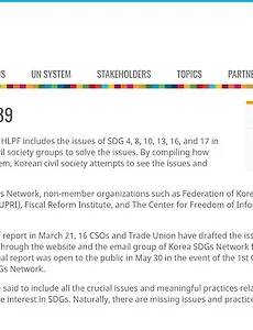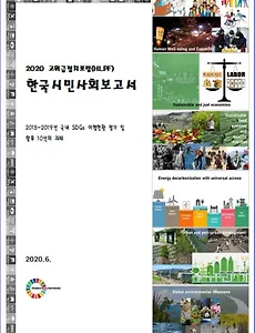 본 보고서는 유엔의 ‘2020 고위급정치포럼(HLPF)(7.7~7.16, 뉴욕)’에 대응하여 작성되었다. 「2020 HLPF 한국시민사회보고서」는 ‘2020 고위급정치포럼’의 인간 웰빙 증진 및 빈곤퇴치, 기아종식 및 식량안보 달성, 경제성장 재개, 경제적 이익 공유, 개도국 재정위기 해소, 지구 보호 및 복원력 구축, 지속가능한 에너지 접근 보장, 이행촉진을 위한 지역실천 강화 등 6개 주제 분야를 중심으로 지난 4년 동안의 한국의 SDGs 이행현황을 종합적으로 평가하고, 향후 10년을 위한 실천과제를 제안하고자 한다. 또한, 관련한 시민사회 실천사례를 제시한다. 본 보고서는 한국시민사회SDGs네트워크(SDGs시민넷) 29개 회원단체들과 한국노동조합총연맹, 굿네이버스가 협력하여 함께 작성했다. 2017..