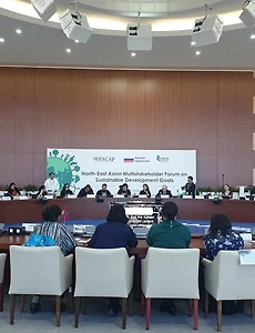 시민사회의 목소리가 곧 목표이행의 결과 한국의료복지사회적협동조합연합회 신선미 정책실장 〔현장에서 전하는 진정성〕 2019년 10월 15일 러시아 블라디보스톡 연방극동대학교에서 UN동북아 SDGs 이해관계자 포럼이 개최되었다. 러시아 56명(26명, 연방극동대학교 30명), 한국 35명, 북한 5명, 몽골 13명, 중국 11명, 일본 9명, 각국 블라디보스톡 주재영사 9명, 국제기구 및 기타 단체 8명, ESCAP 8명등 총 6개국 154여명이 이 회의에 참석하였다. 회의 첫날, 간볼드 바산야브 ESCAP회장은 인사말에서 “다른 분야의 사람들과 함께 할 때 더 나은 결과를 가져올 수 있다”고 하였다. 그의 인사말은 회의 마지막 날 CSOs의 토론결과로 발표된 성명서 내용을 마치 사전 예견한 듯 하였다. 1..